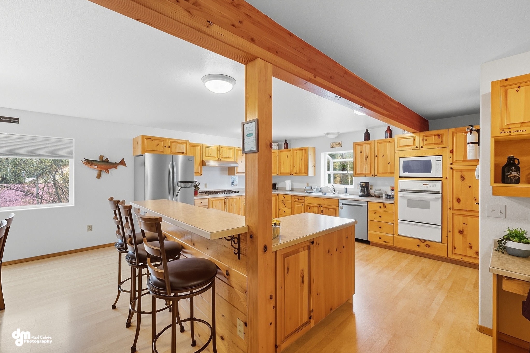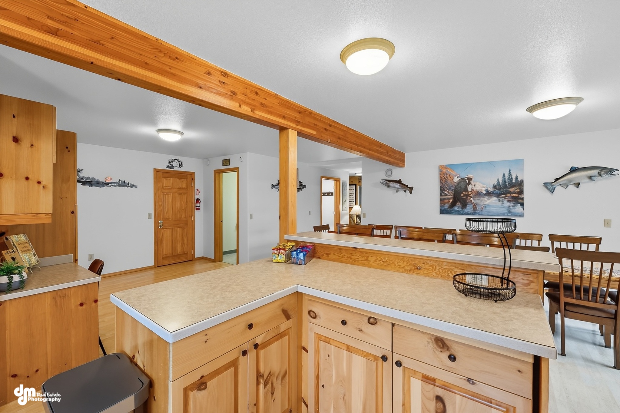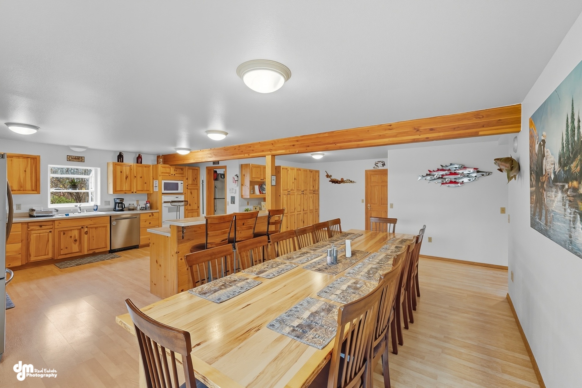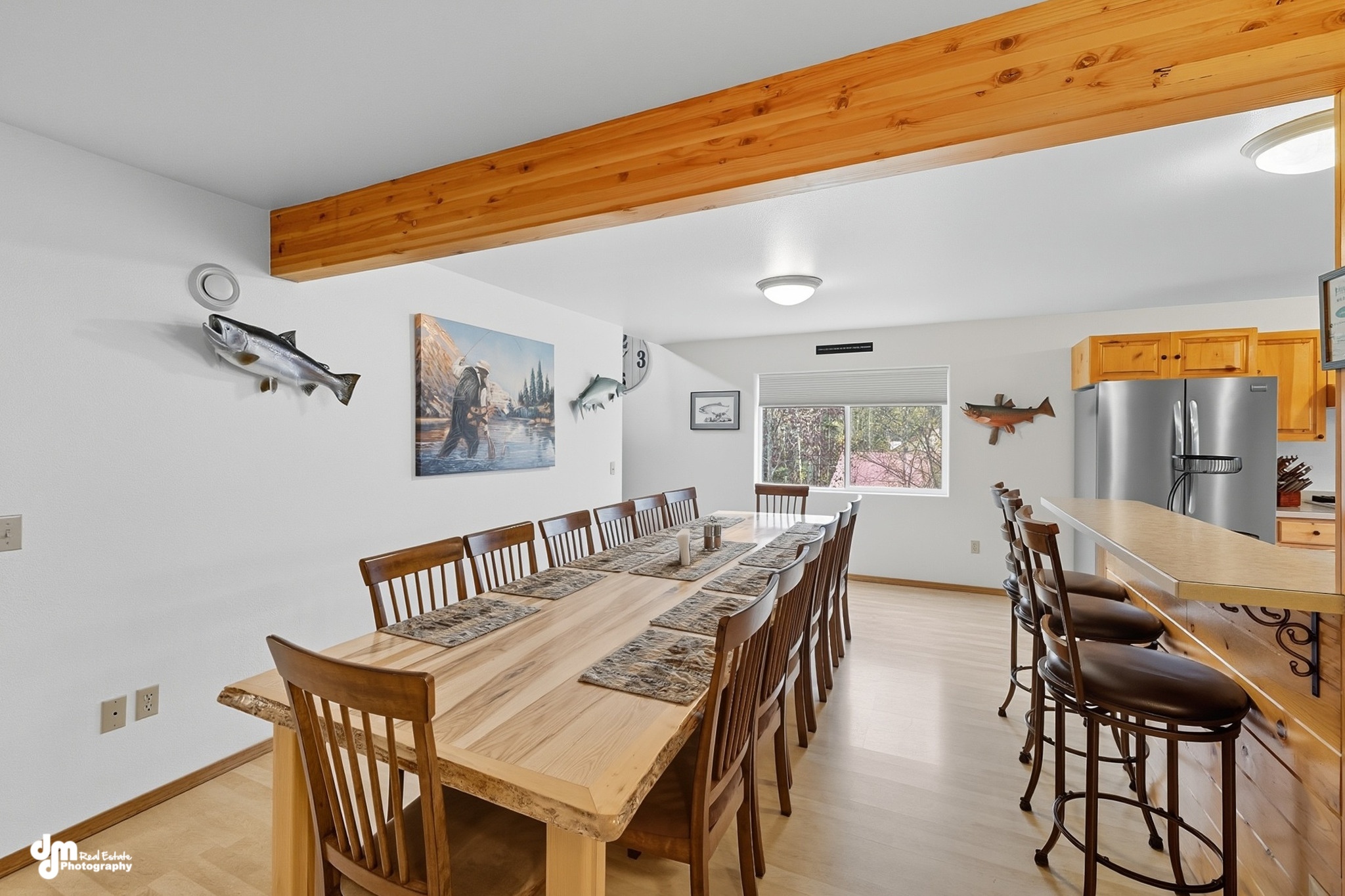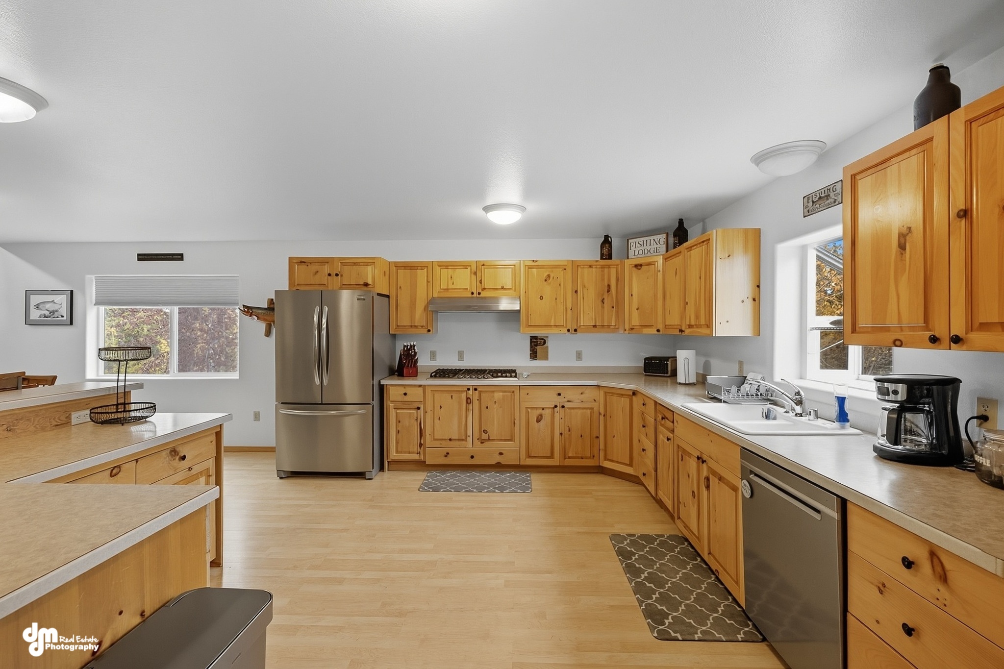As a reminder, all meals are your responsibility so kindly plan in advance. If you don’t want to cook, or are just too tired after a day of fishing – you can dine at a local restaurant. Your other option is you can pick up items to cook with at the lodge at a local store. You will pass both on your way back to the lodge from your day of fishing. We offer a large kitchen with condiments, spices, and extensive cooking essentials such as oil to assist your cooking needs as you prepare your meals. Our kitchen is stocked with every gadget and appliance you would need and more! In our fully equipped kitchen, you will have access to two large refrigerators and individual pantries to stock up on your preferred meal and beverage choices. The kitchen includes cookware, dinnerware, utensils, and silverware. If you prefer to BBQ or grill up your catch of the day, we have a spacious outdoor deck with a large grill for your use. Enjoy the outdoor fire pit sitting area after your meals and share your fish stories with your group.